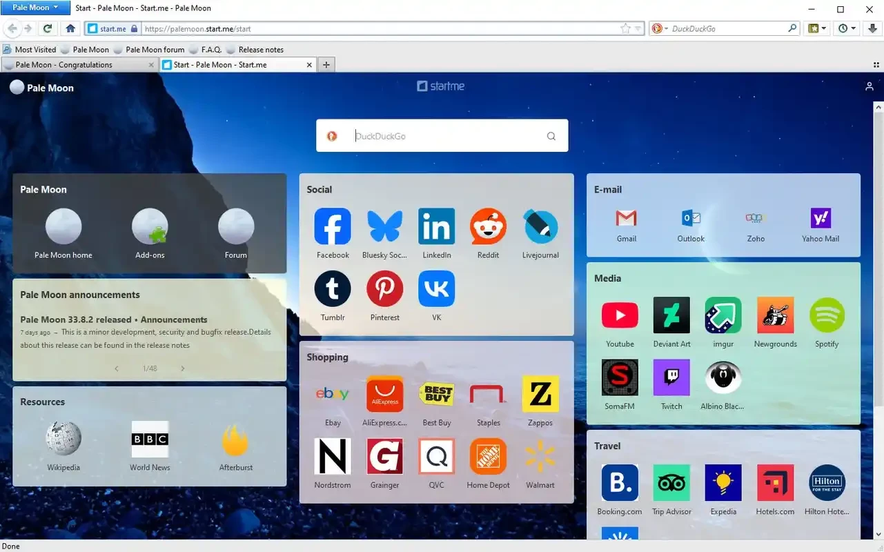 Pale Moon เป็นเว็บเบราว์เซอร์ที่พัฒนาต่อยอดจาก Firefox โดยให้บริการอย่างเป็นทางการบนระบบปฏิบัติการหลายระบบ รวมถึง Windows, Linux, MacOS และ FreeBSD มันมีความคล้ายคลึงกับ Firefox มาก แต่ถูกสร้างขึ้นจากซอร์สโค้ดอิสระ และอยู่ภายใต้ลิขสิทธิ์ MPL-2.0 มันผสานรวมเข้ากับส่วนขยายของ Firefox ได้อย่างราบรื่น ในขณะเดียวกันก็ยังคงรักษาความเป็นเอกลักษณ์ของตัวเองไว้